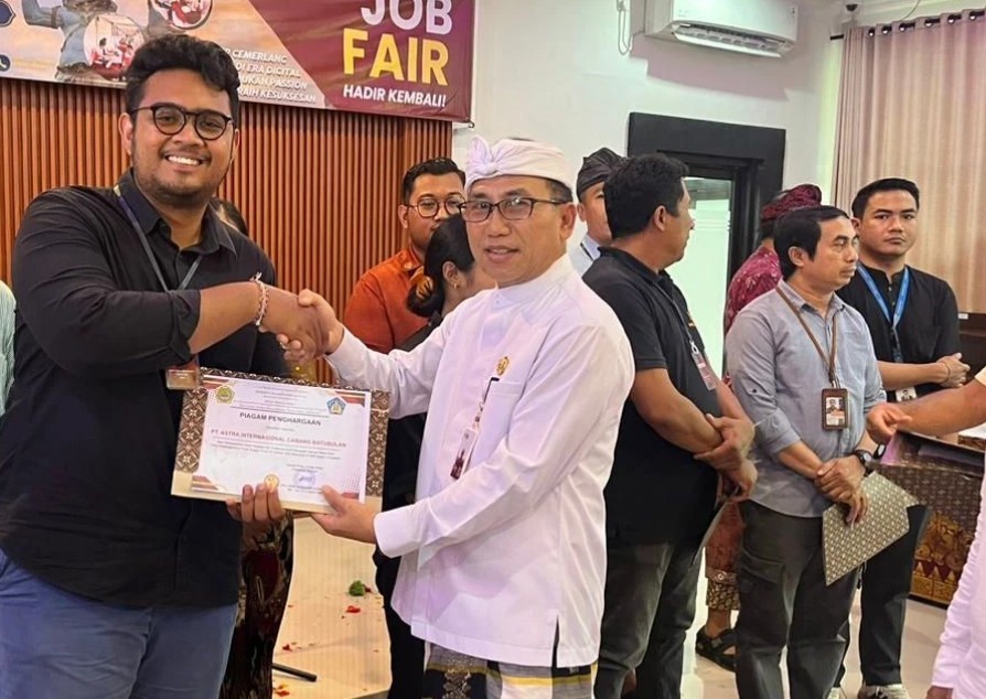 Asisten Administrasi Pemerintahan dan Kesejahteraan Rakyat Kabupaten Gianyar, I Ketut Mudana, yang turut hadir dalam kesempatan tersebut, memberikan apresiasi tinggi terhadap terselenggaranya Job Fair 2025.